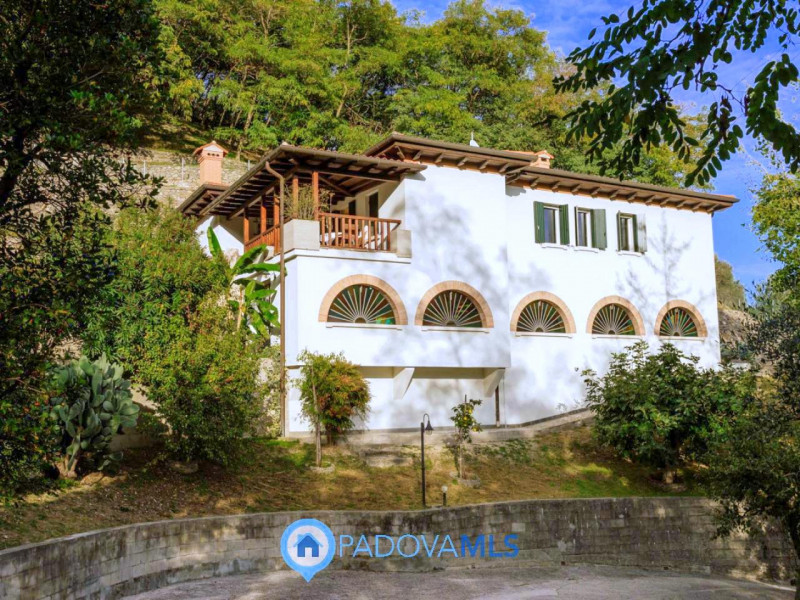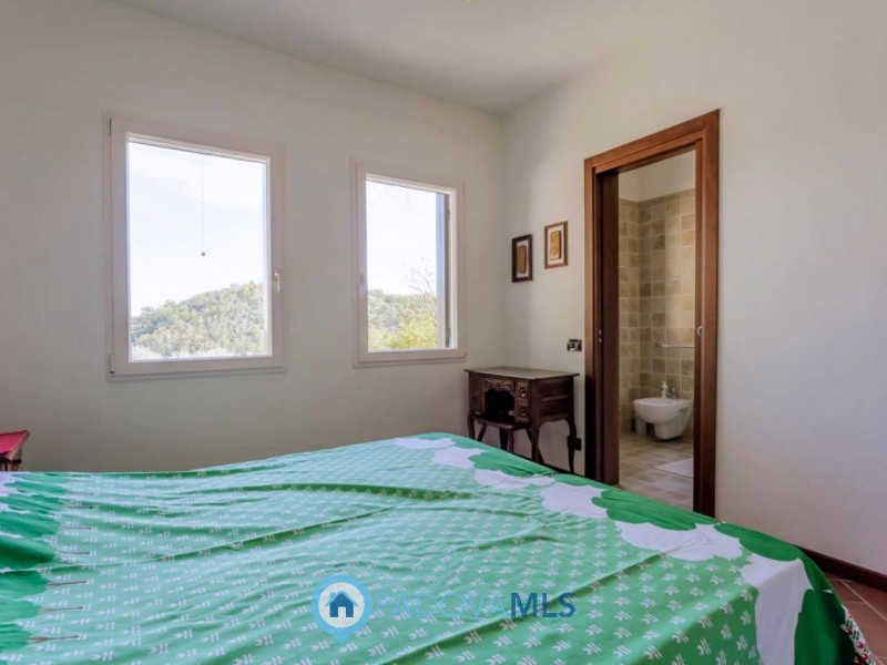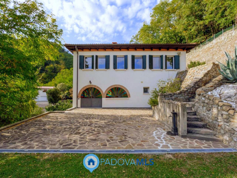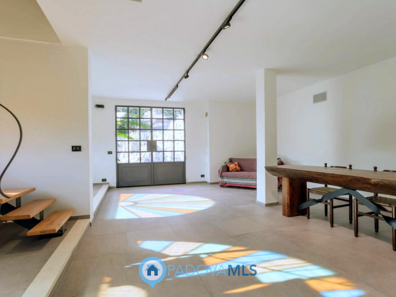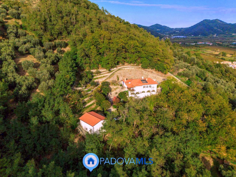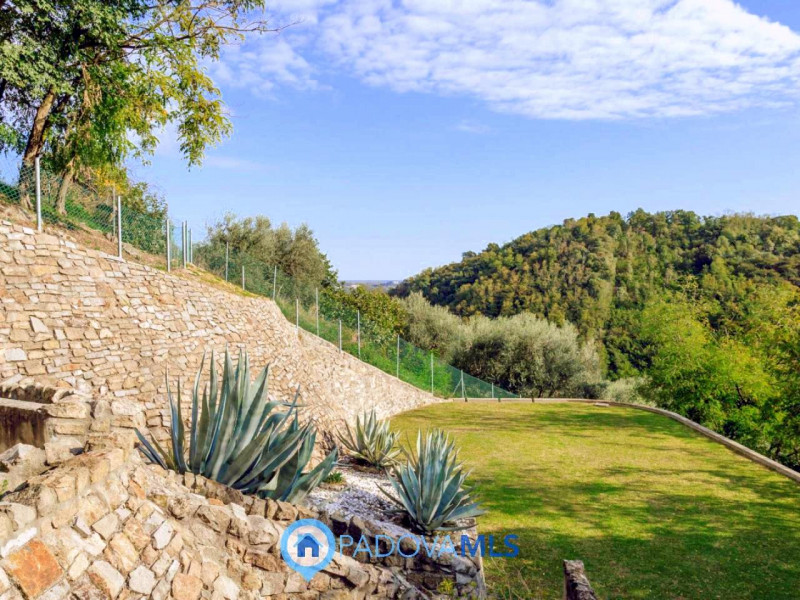 Galzignano Terme: Villa contemporanea situata in posizione aperta e panoramica; la proprietà di circa 17.000 mq è contornata da bosco e quindi garantisce massima privacy pur essendo comoda al centro del paese. L'abitazione è stata oggetto nel 2008 di ampliamento e radicale ristrutturazione, si sviluppa su due livelli. Il cuore abitativo è sviluppato al piano soprelevato e si compone di una terrazza coperta con vista sulla proprietà che da accesso all'ingresso che funge da disimpegno delle varie zone abitative che sono: