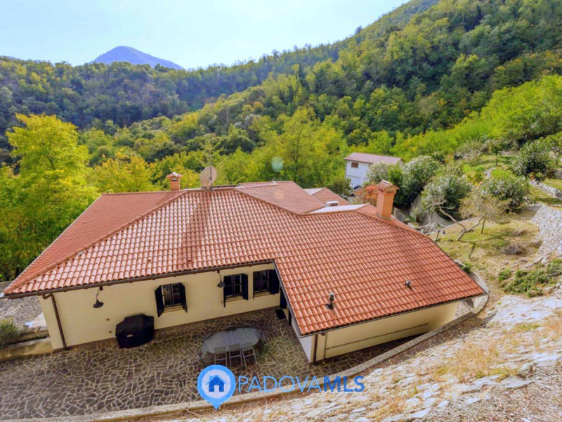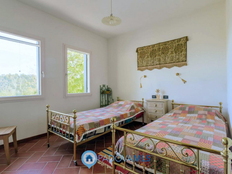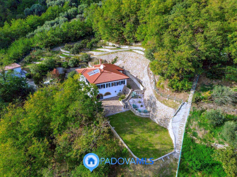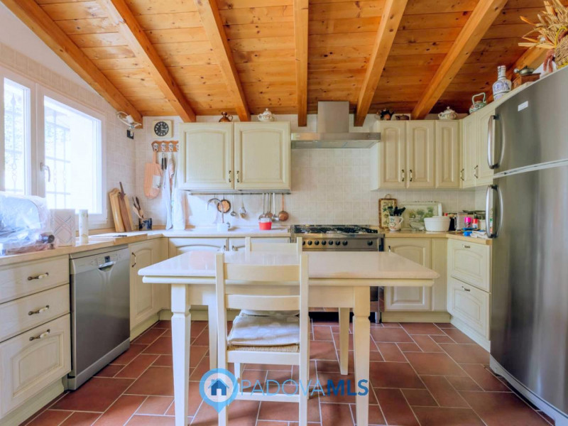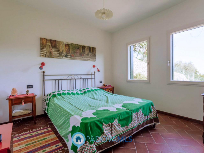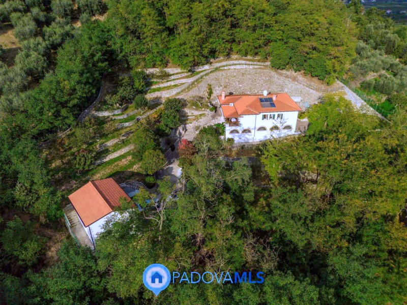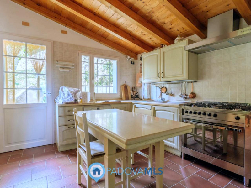Galzignano Terme: Villa contemporanea situata in posizione aperta e panoramica; la proprietà di circa 17.000 mq è contornata da bosco e quindi garantisce massima privacy pur essendo comoda al centro del paese. L'abitazione è stata oggetto nel 2008 di ampliamento e radicale ristrutturazione, si sviluppa su due livelli. Il cuore abitativo è sviluppato al piano soprelevato e si compone di una terrazza coperta con vista sulla proprietà che da accesso all'ingresso che funge da disimpegno delle varie zone abitative che sono: