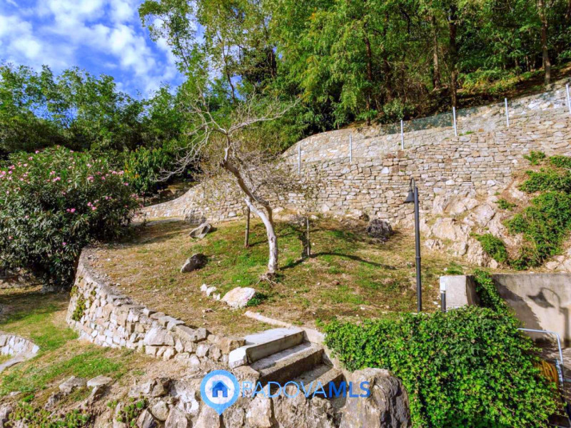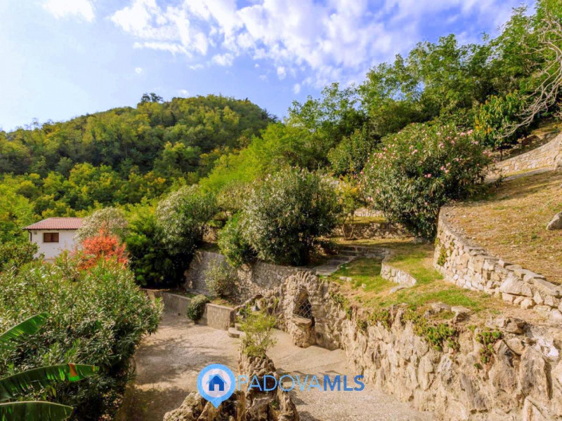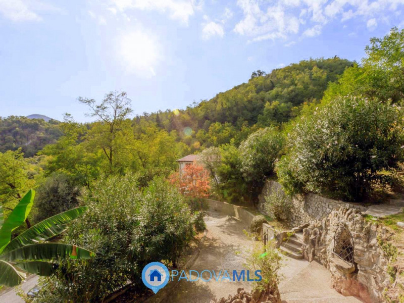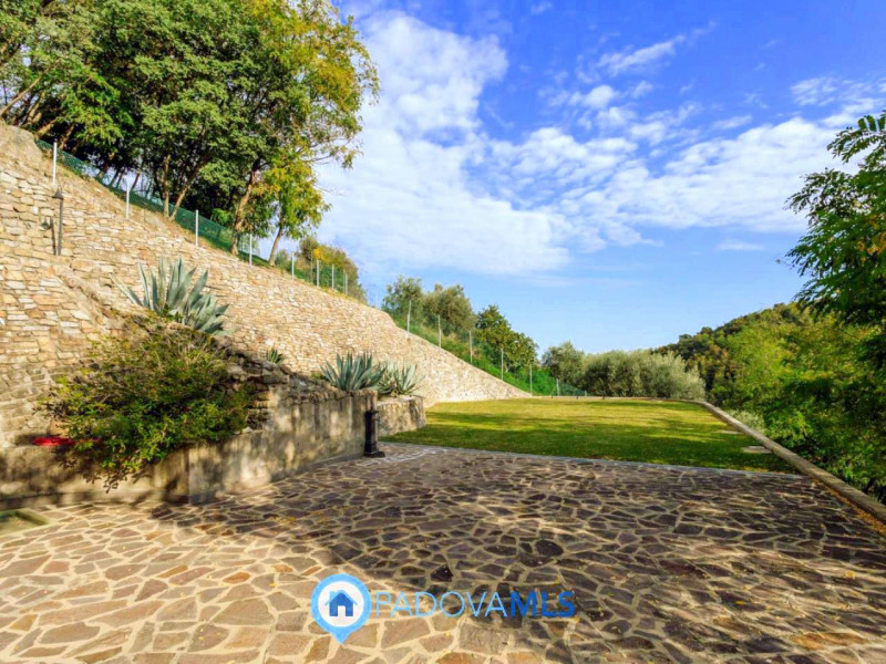 Il giardino che contorna la villa è stato rivisitato creando alcuni terrazzamenti con murature in pietra ed un suggestivo percorso perimetrale recintato, la proprietà prosegue oltre la rete fino alla sommità della collina piantumata con essenze tipiche della zona.